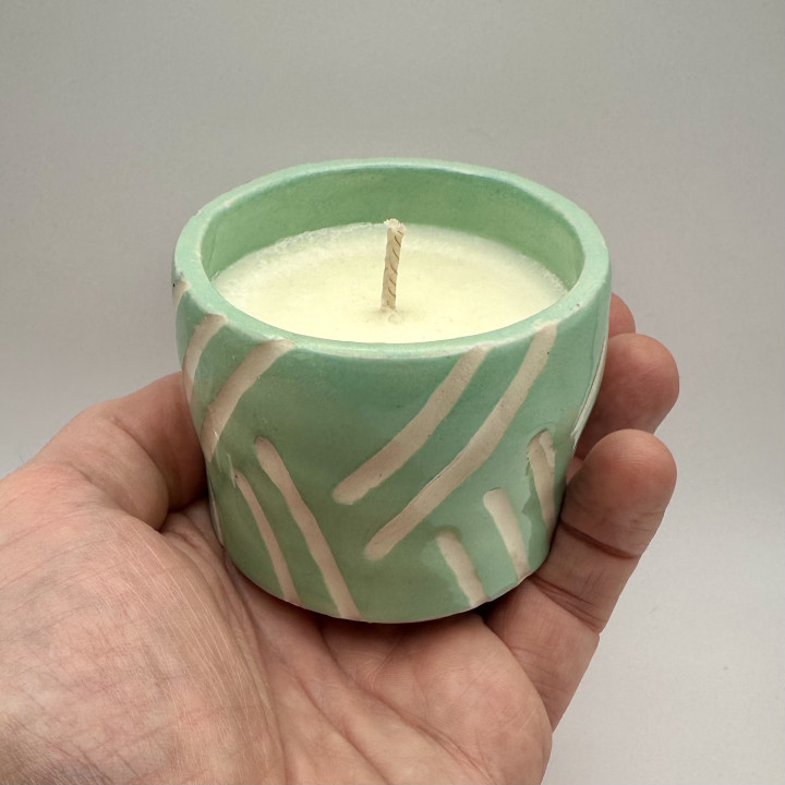 Jasmine, violet, rose and fir tree fragrance, green ceramic candle